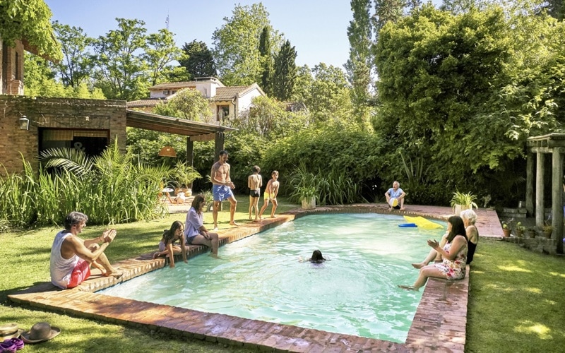 Use a projector to create a backyard movie night during a clear summer evening. Provide plenty of floats to allow guests to enjoy the movie while floating along in your luxury pool.